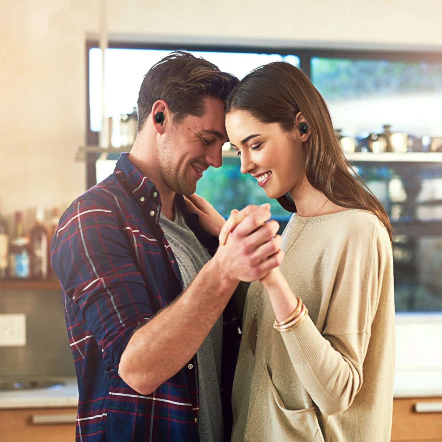 • **TRUE WIRELESS & SNUGLY EAR FIT*:True wireless dual ear stereo design,left and right earbud can be separated,that is,you can use its left and right ear headset solely(Single Track Mode),also can used them in pairs(Stereo Mode). Its soft silicone and 3-size ear tips(S-M-L) snugly fit your auricle and guarantee 100% stable and comfortable for long time wearing.