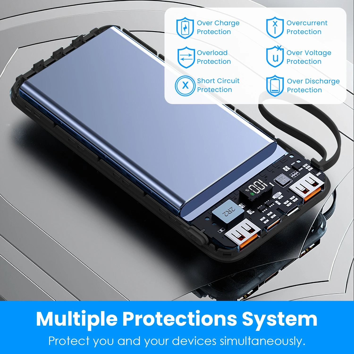 - *Superior Safety*:Built in advanced circuits and high efficiency power management ensure safe charging,our portable phone charger protect itself and electronic devices from overcharging,over-discharging,short-circuiting,over-current and high-temperature protection.